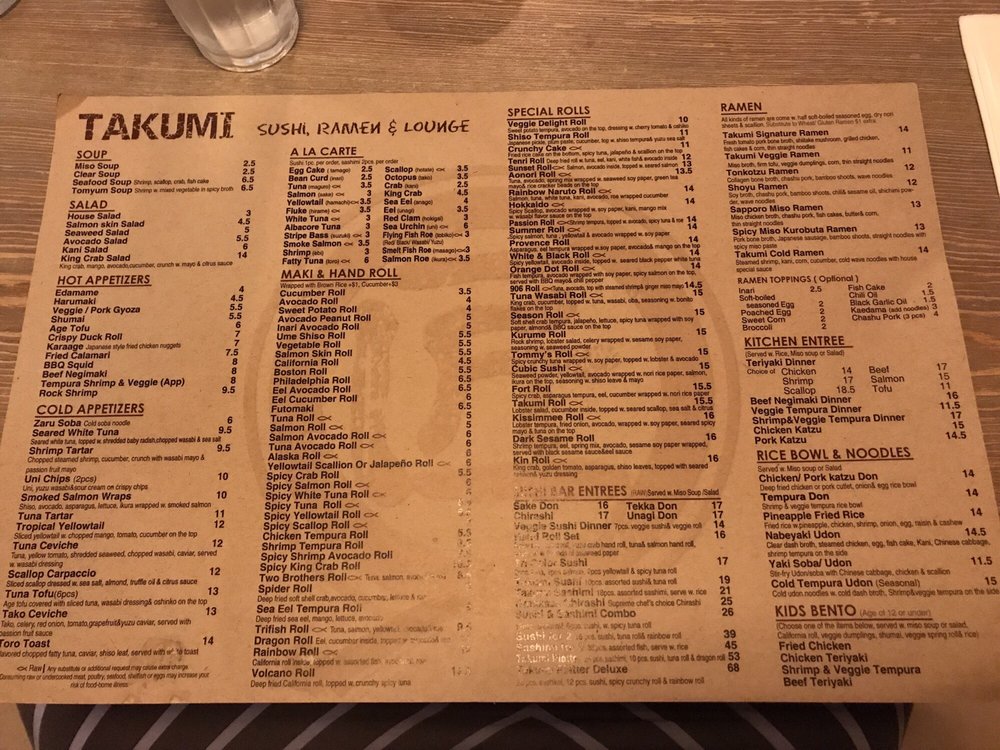 Takumi's menu offers a delightful array of dishes, showcasing rich, authentic flavors. Their ramen, crafted with care, features both classic and creative broth options, satisfying diverse palates with excellent vegan and vegetarian choices available. Equally enticing, the sushi selection boasts fresh ingredients and expertly rolled creations that are sure to impress.